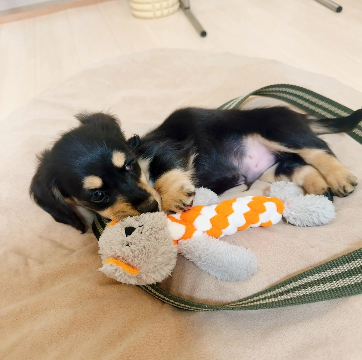 お気に入りのおもちゃを引きずり回して元気いっぱいです✨